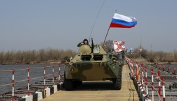 Российские военные навели переправу через реку Припять