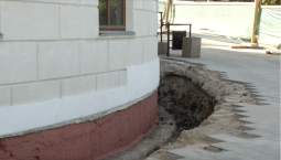 В здании Диорамы идут работы по гидроизоляции
